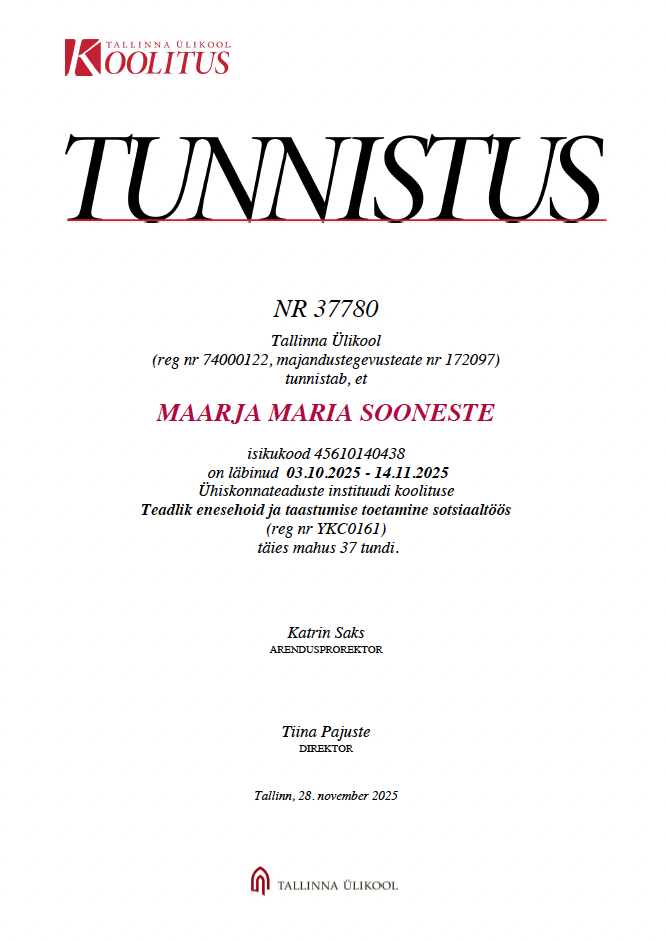 Professionaalsuse tagamine. Viimased täienduskoolitused